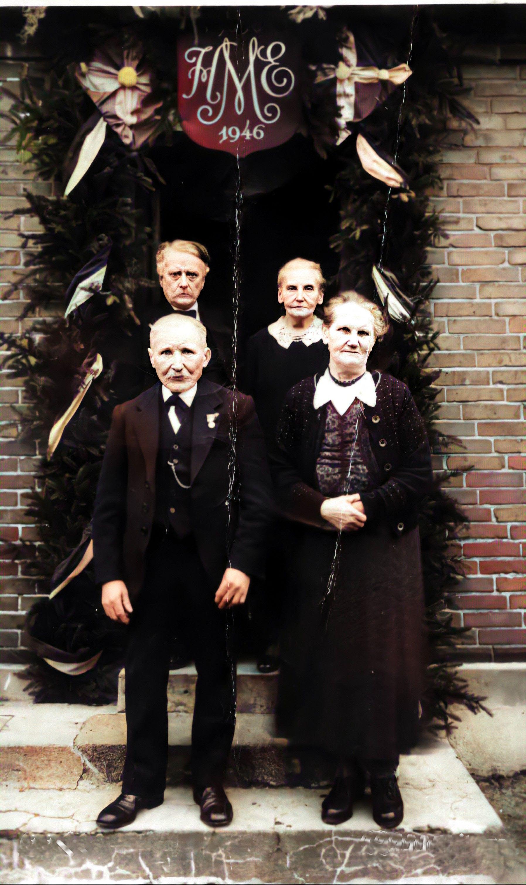Karen Marie står i baggrunden, hendes mand døde i 1920.