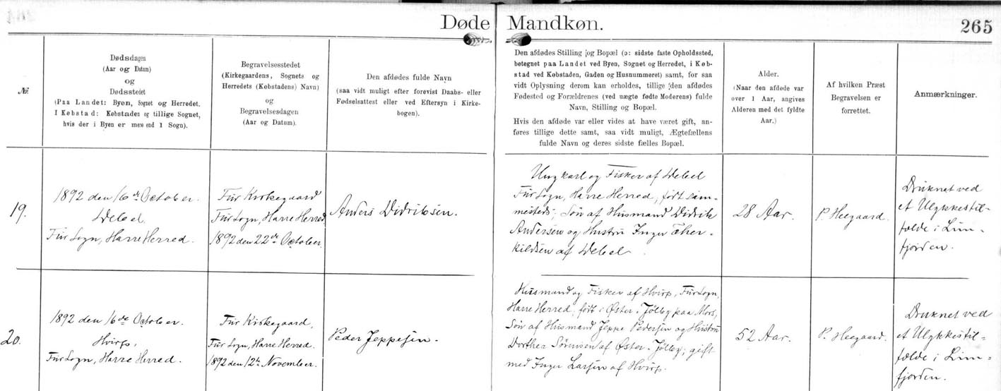 1879, 4. oktober                  Hans Helgesen,  druknet 16. oktober 1892 (findes ved Selde efter ½ år)