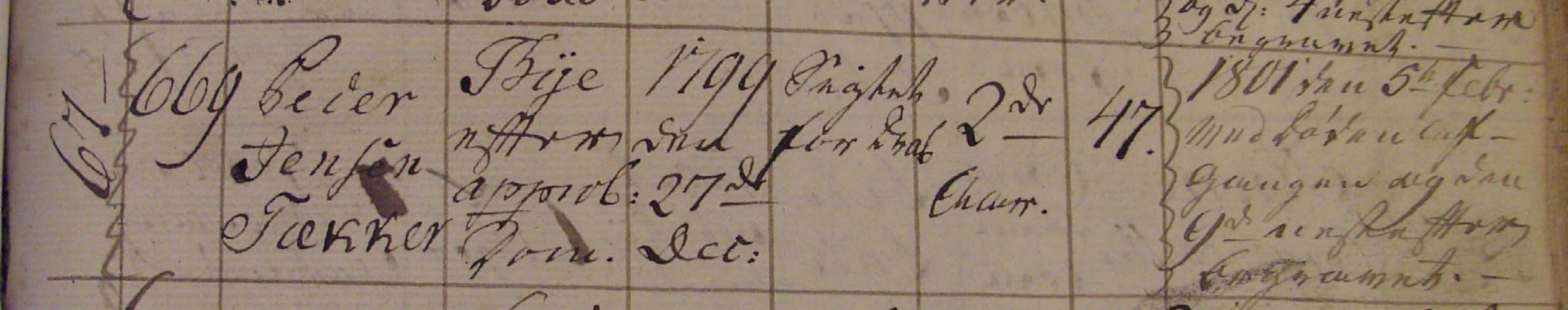 de 27. december 1799, og han døde i begyndelsen af februar 1801, 38 år gammel.