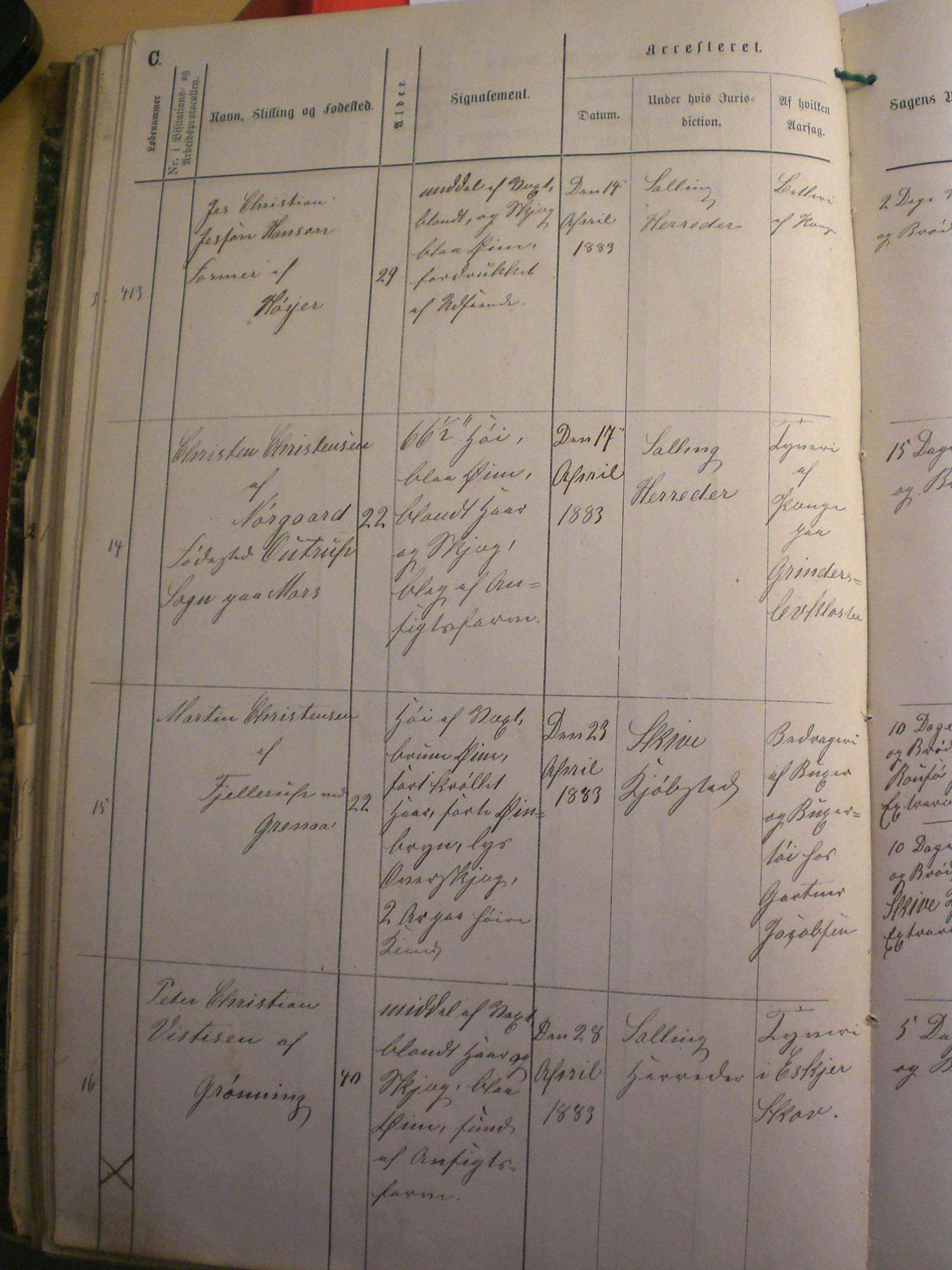 Peder Vistisen kom til at sidde i Skive arrest fra 28. april til 3. maj 1883, og